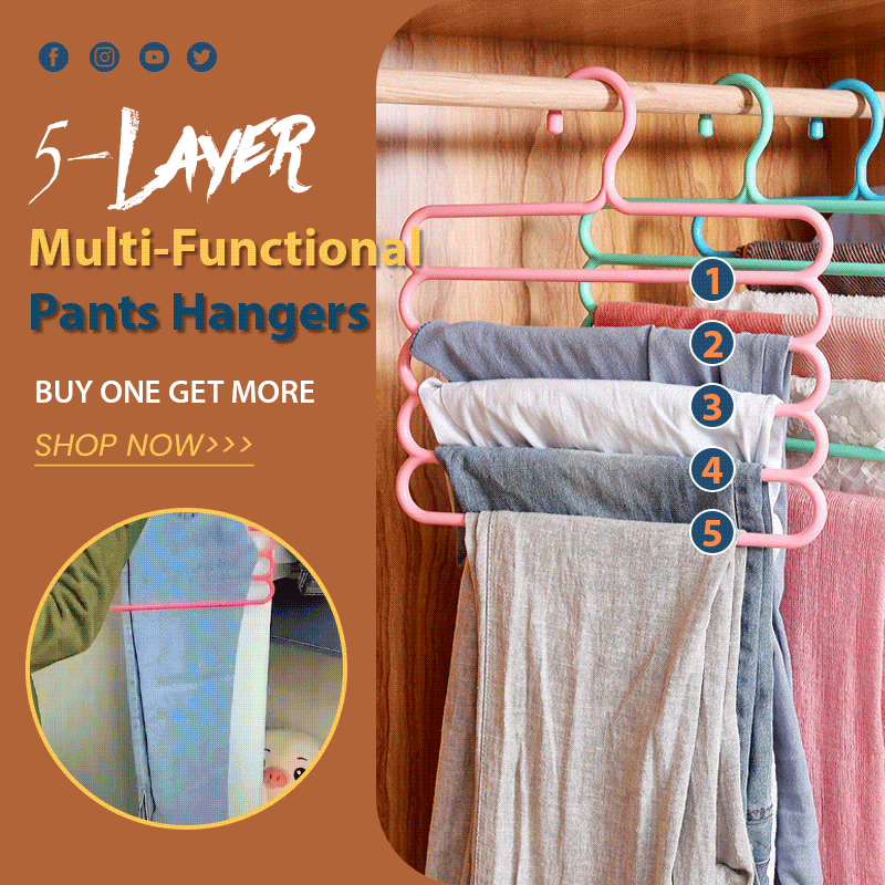 - Let the Multi-Functional 5-Layer Pants Hangers help you! This is a magic hanger that can save more space for your closet system. It is an expert in clothes classification as well!