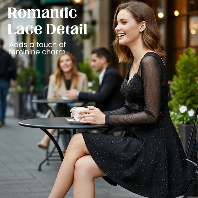 💖New Arrival💖Starry Night Sparkle Party Dress with Lace Bodice