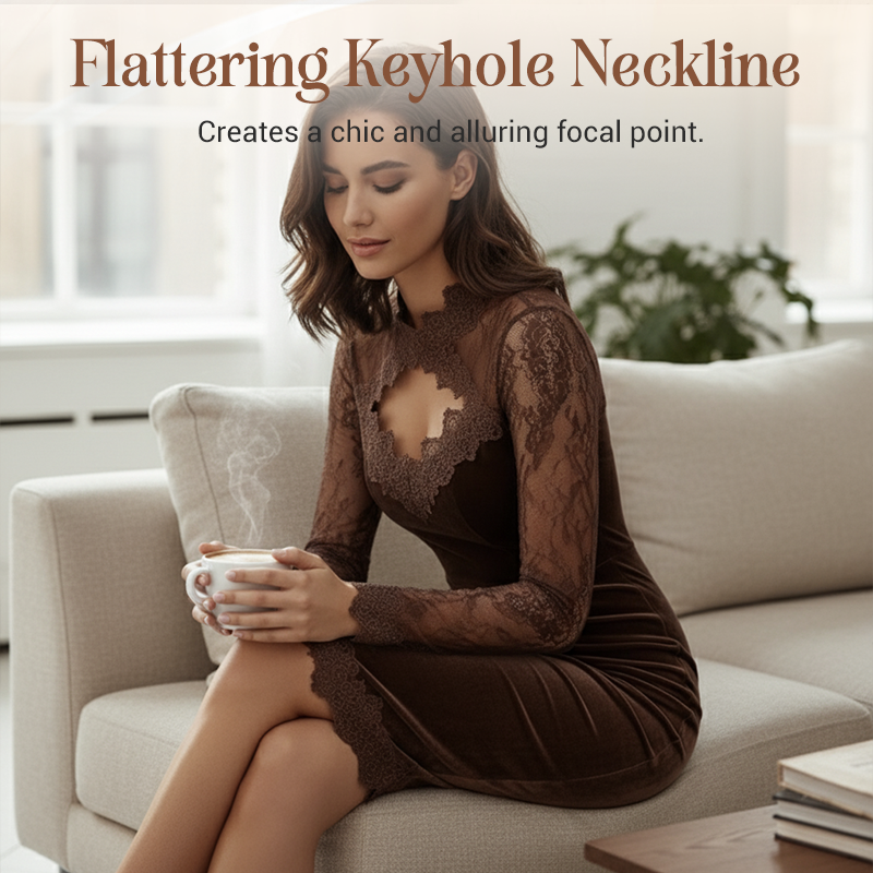 🔥Christmas Limited-Time Offer: 50% OFF!!!🔥Women's Keyhole Neckline Lace Sleeve Mini Dress
